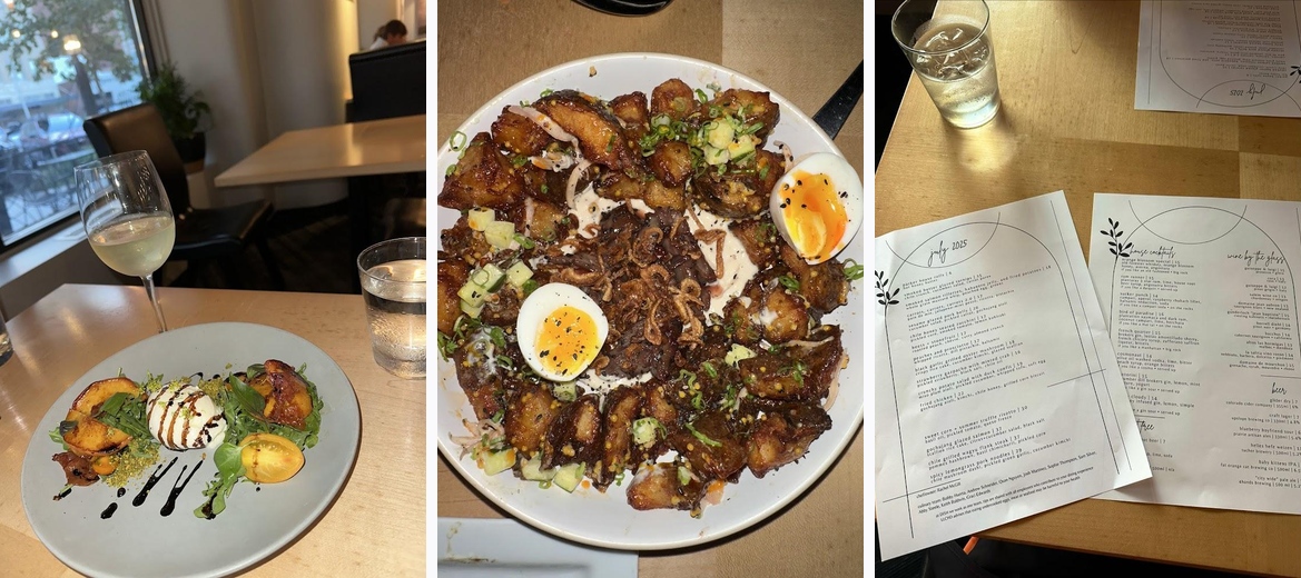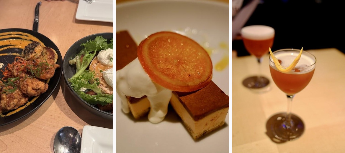 Don’t miss the garlic oyster mushrooms, sesame glazed pork belly, and the butterscotch pudding with caramel sauce for dessert. Each dish showcases creativity and seasonal flavors.